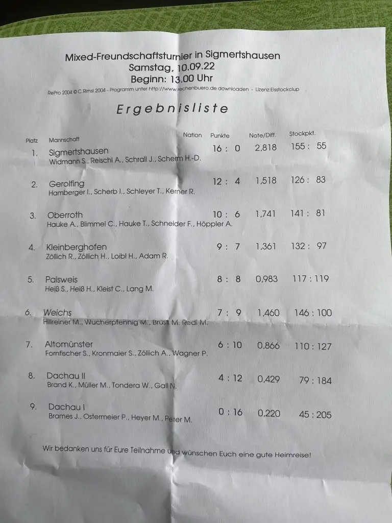 Mix-Turnier für ESC I + ESC II in Sigmertshausen, um 13.00 Uhr
