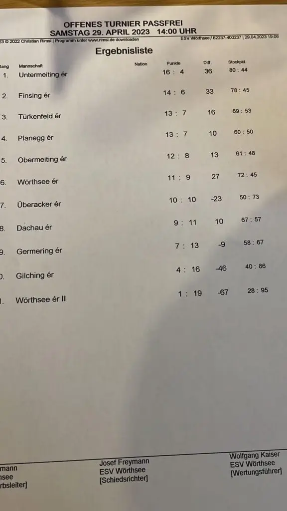 Mix-Turnier am Wörthsee, um 14.00 Uhr