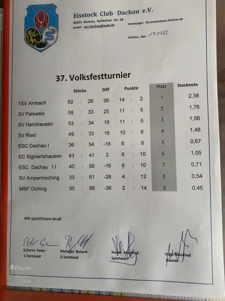 Gratulation dem diesjährigen Sieger des Volksfestpokal.Turniers „ TSV Arnbach „