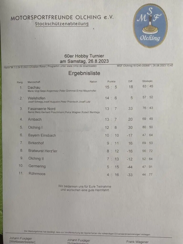 Freundschaftsschiessen / Ü60 – Turnier ( Titelverteitiger !! ) in Olching, Samstag ab 08.30 Uhr