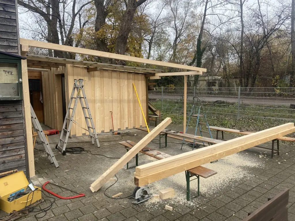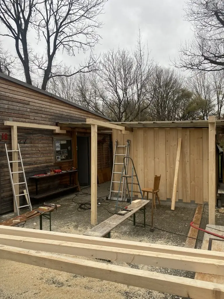 ESC – Vereinsheim, Umbau der Pergola mit separaten Geräteraum
