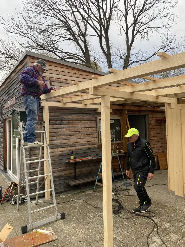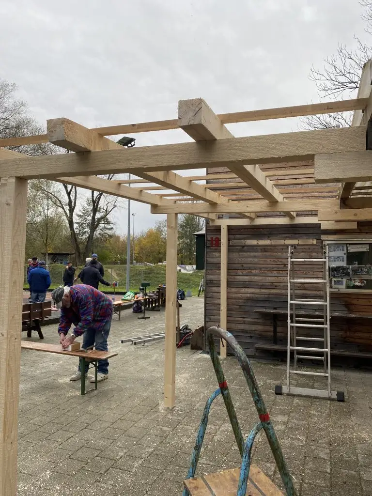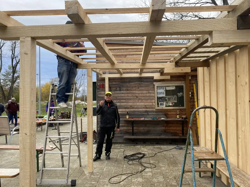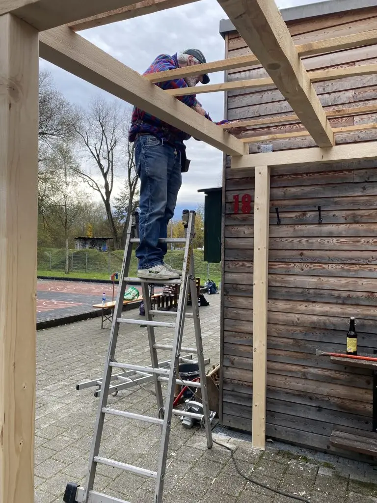 Für den heutigen Tag war das „Holzgerüst für die Überdachung der Pergola“ als Ziel vorgegeben !