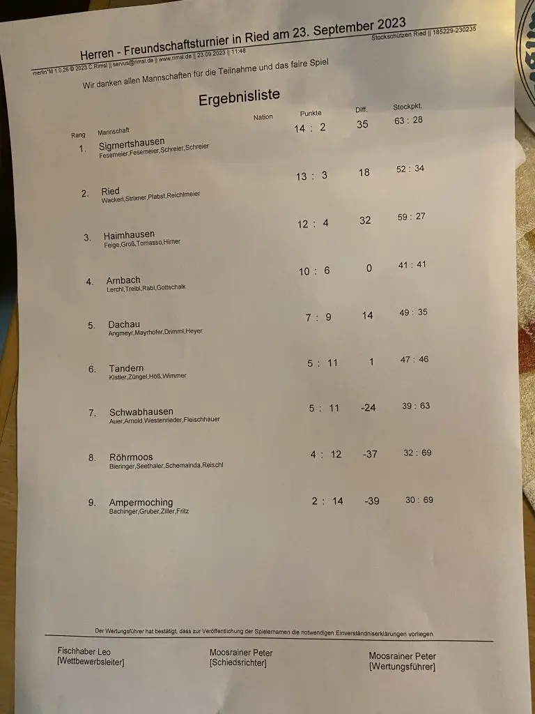 Vielen Dank an den Ausrichter den SV Ried, für die super Organisation und Bewirtung.