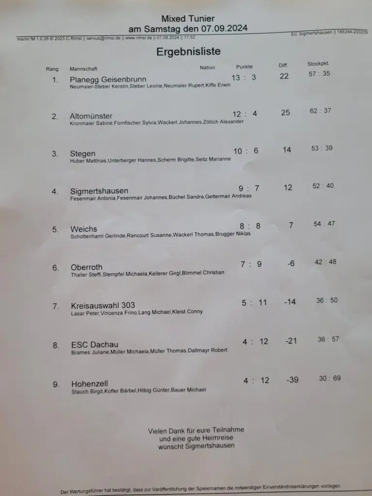 Turniermeldung : 12.30 Uhr – Spielbeginn : 13,00 Uhr