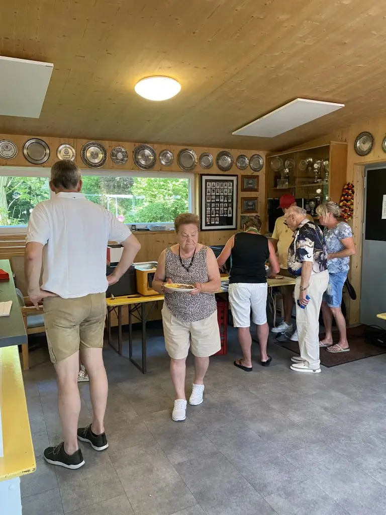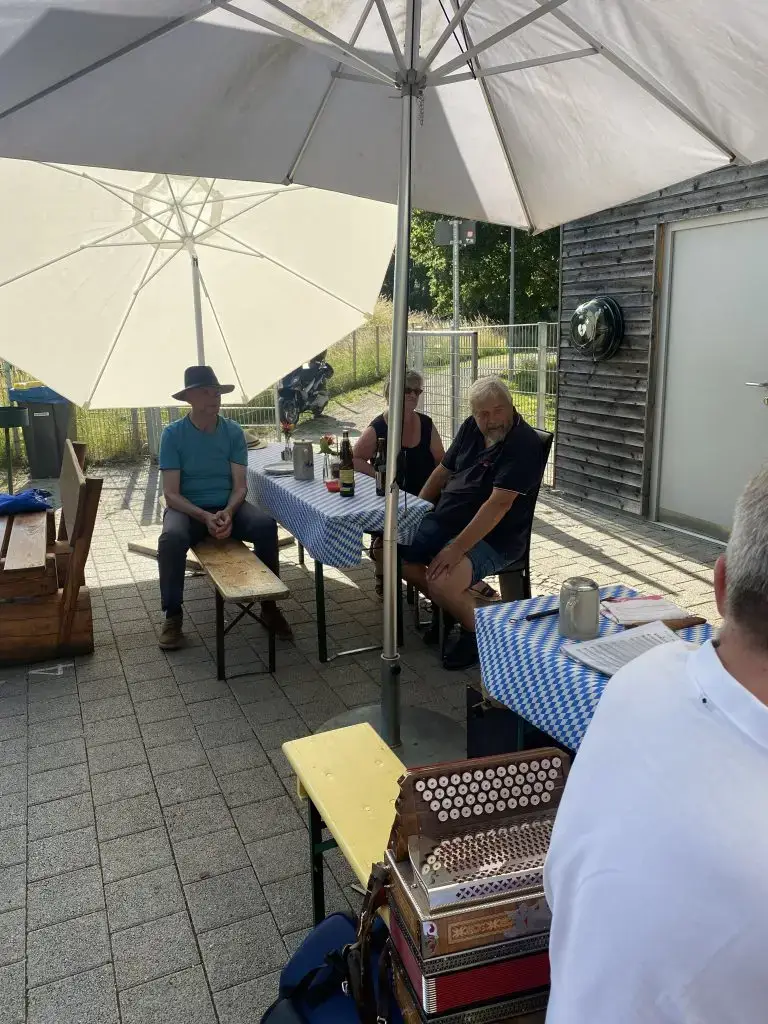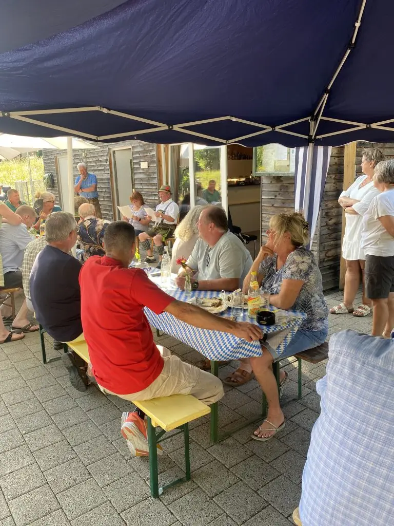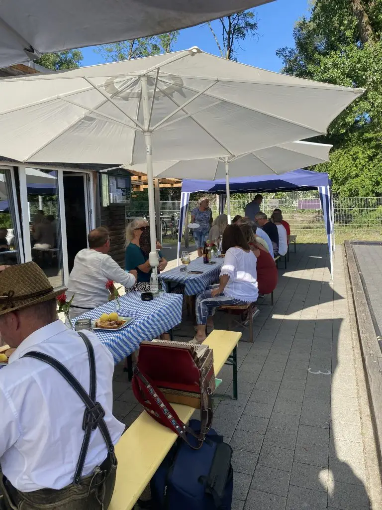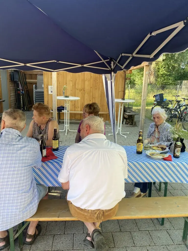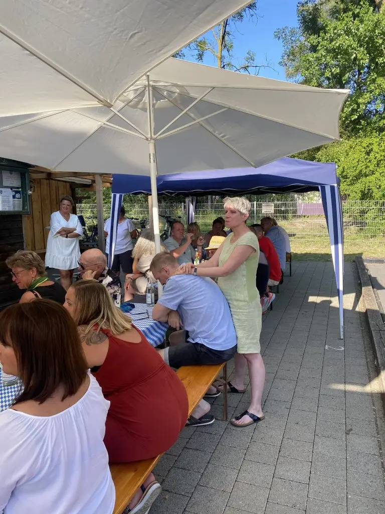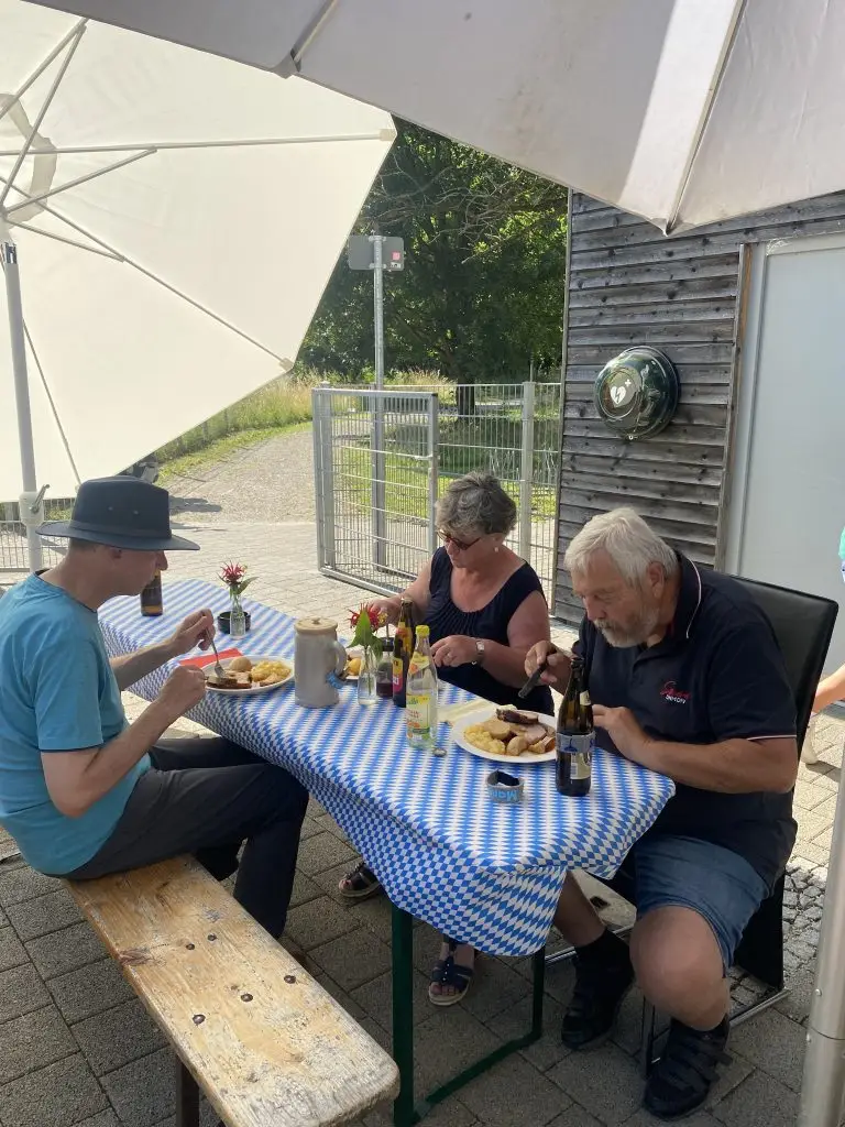 Bei schönsten Wetter sind viele der eingeladenen Mitglieder und Gäste zum gemütlichen Beisammensein und Essen erschienen !