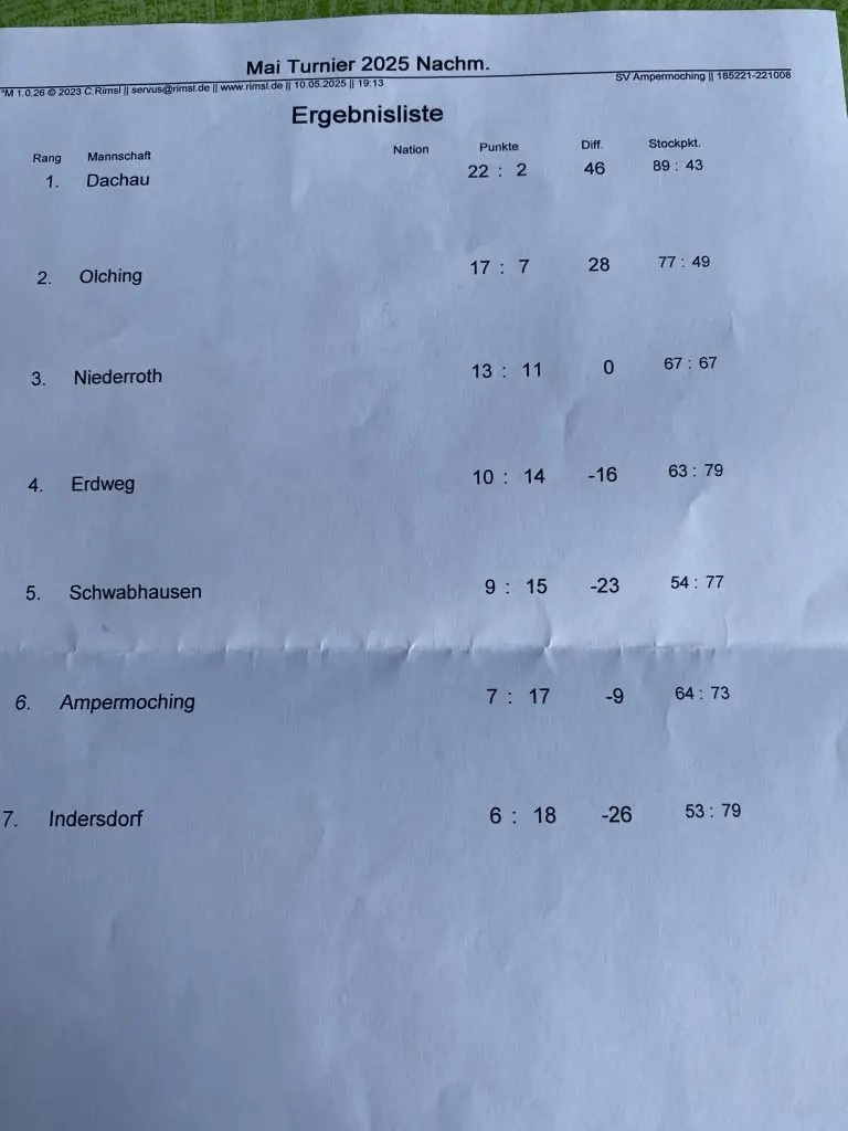 Heute war unser Tag .. wir starteten gleich mit 10:0 Pkt. und wurden nur einmal gegen Erdweg in der Rückrunde leichtsinnig und mussten das Spiel abgeben. Von da an wurde konzentriert weiter gespielt. Somit konnten wir das Turnier „Souverän“ gewinnen und somit den ersten Platz ( seit langen wieder ) einfahren.