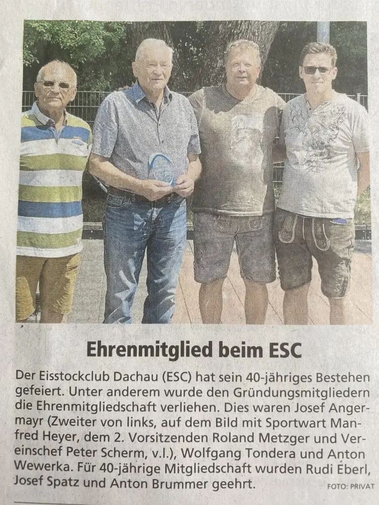 40-jährige Mitgliedschaft beim ESC-Dachau
